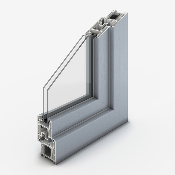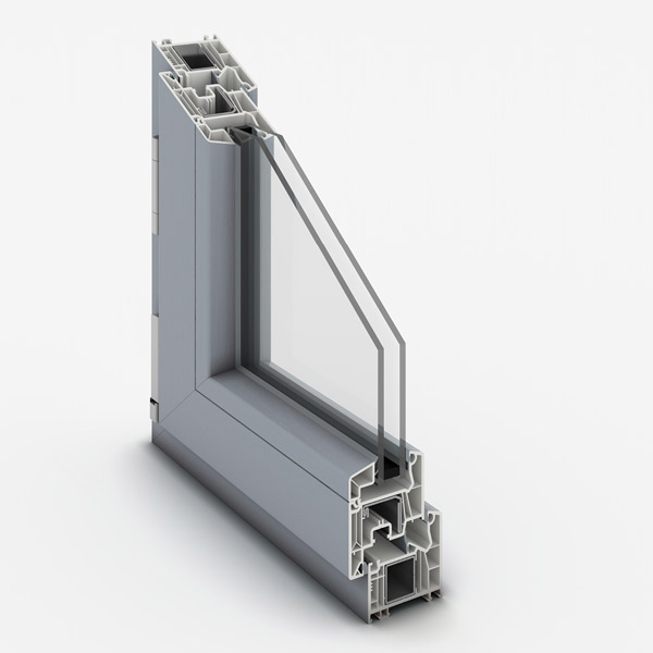 Profilo anta da 76×84 mm, a 5 camere, con rinforzi in acciaio da 20/10 mm.