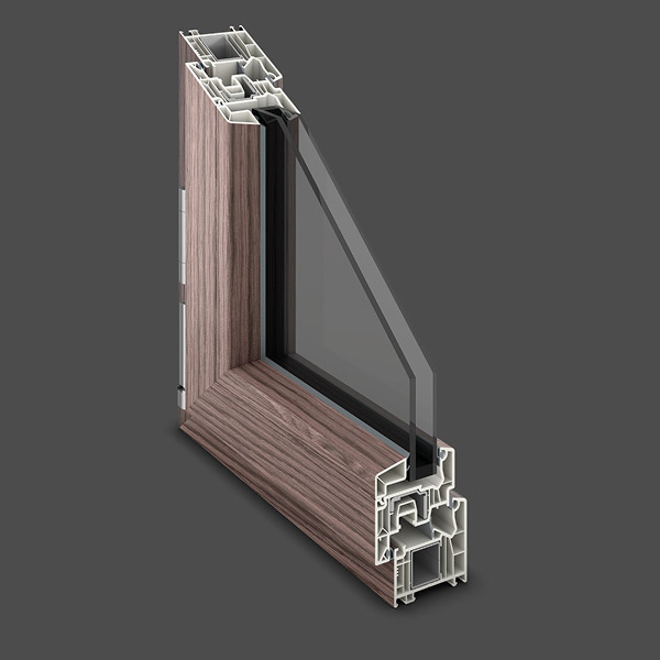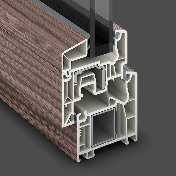 Profilo anta da 82×76 mm, a 6 camere, con rinforzi in acciaio da 20/10 mm.